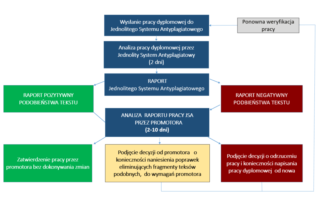 Praca, która nie zostanie sprawdzona w JSA przed planowanym terminem złożenia egzaminu dyplomowego, nie może zostać dopuszczona do obrony w tym terminie.
